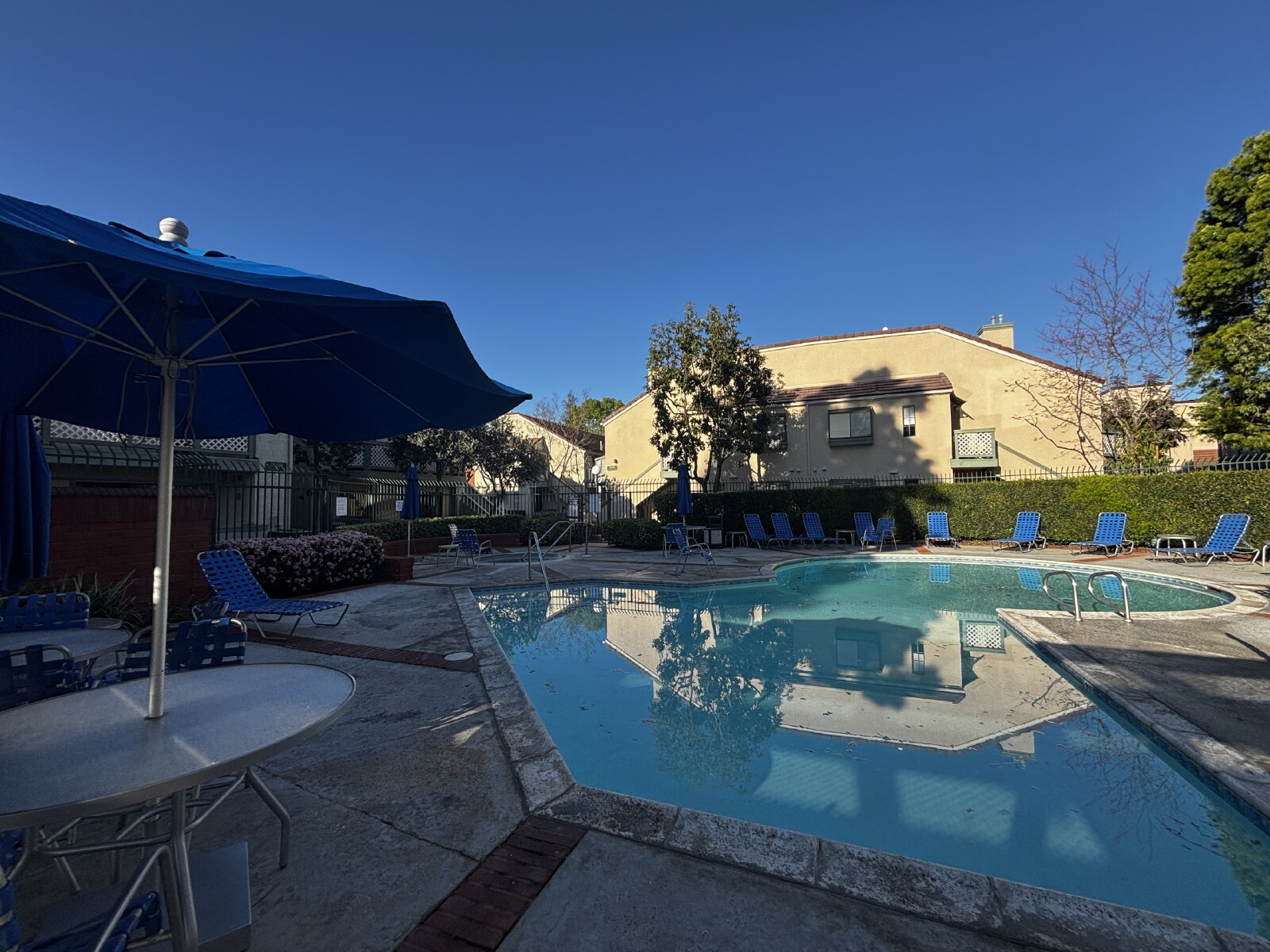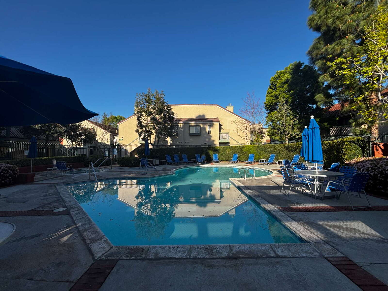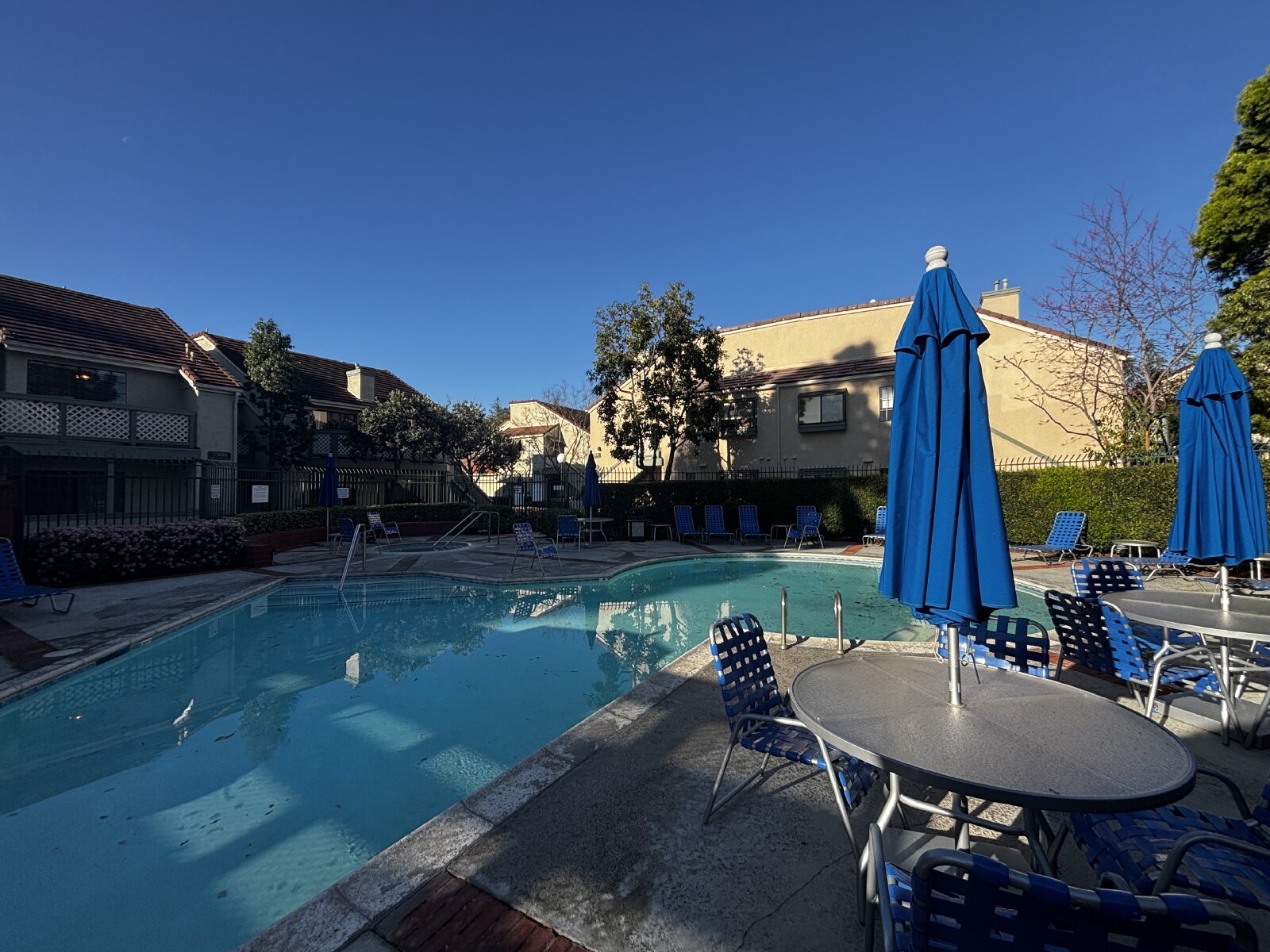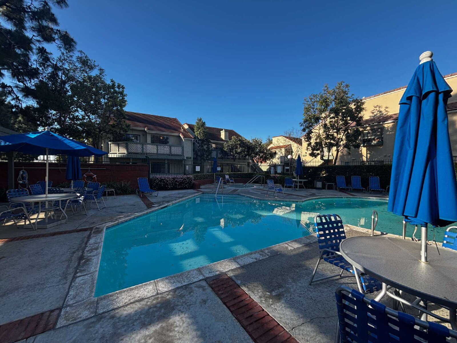 Enjoy modern comforts with forced air heating and AC, along with inside laundry featuring a stackable washer and dryer. This pet-friendly community features winding walkways, two swimming pools, and spas for relaxation.